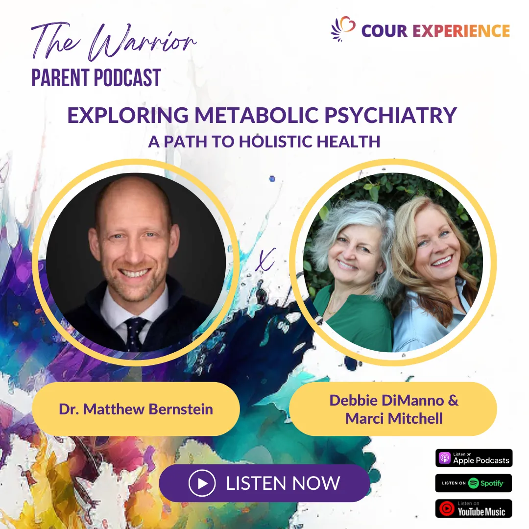 In this episode of The Warrior Parent Podcast, our hosts Marci Mitchell and Debbie DiManno invite Dr. Matthew Bernstein to explore the transformative potential of metabolic psychiatry in improving mental and physical health. He shares insights on the benefits of lifestyle changes, such as adopting a ketogenic diet and simplifying exercise routines, to boost vitality and well-being. With practical advice and inspiring stories, this episode will empower you to take control of your health while offering resources for deeper understanding.