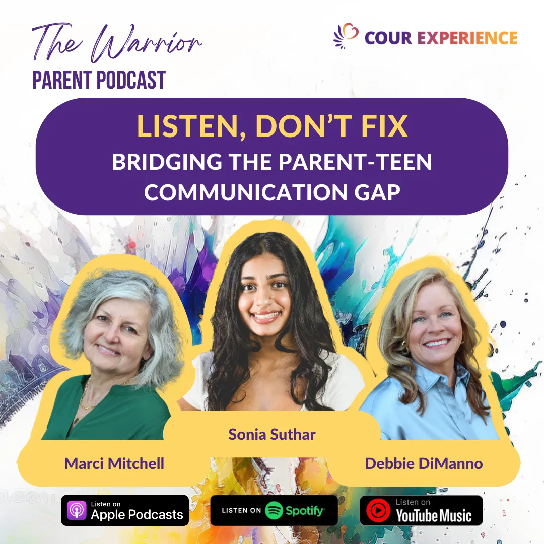 In this inspiring episode of The Warrior Parent Podcast, Marci Mitchell and Debbie DiManno speak with teen entrepreneur Sonia Suthar about emotional intelligence, autonomy, and bridging the communication gap between parents and teens. Sonia shares practical tools for raising confident, self-aware young adults—including the powerful shift from fixing to listening. This conversation offers hope, actionable insights, and a fresh perspective from the next generation of leaders.